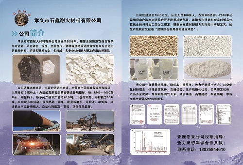 山西孝義市石鑫耐火材料有限公司成立于2009年,注冊(cè)資金1240萬(wàn)元。2011年投產(chǎn),主要生產(chǎn)鋁系耐火材料,產(chǎn)品包括高溫鋁礬土、輕燒礬土及耐火,砂莫來(lái)石,均化耐火材料,污水處理陶粒,凈水處理陶粒,煅燒高嶺土,焦寶石等。